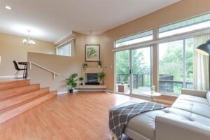 Corner Duplex-Style Townhouse 3 Bed/3 Bath- over 2,341 Sq.Ft. Quite Private Back Yard facing the of the school. Renovated w/a Great open floor plan, large living room & family room w/cozy fireplaces, brand new oversized sundeck! Large kitchen, bright sunny breakfast area, new laminated floor thru out. Master bedroom w/ensuite-soaked tub/shower, Spacious bedrooms, in suite laundry, double garage w/open space for 2 additional vehicles. A dream Handyman workshop or extra room to use in the garage, and lots of storage spaces. Centrally Located in the growing and peaceful community of Hamilton near a Community Centre, walking distance to a bus stop & elementary school, and offers easy access to shopping, highways, SkyTrain. **OPEN HOUSE Sat & Sun, March 15 & 16, 2pm-4pm.